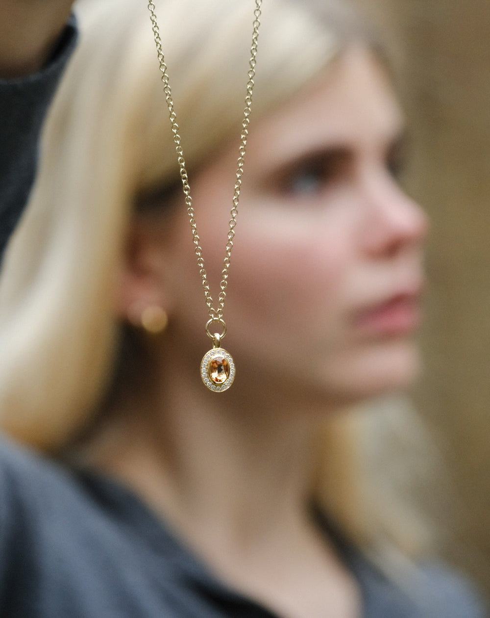 FRAME Large Framed Golden Topaz Gold Necklace with Diamond Halo