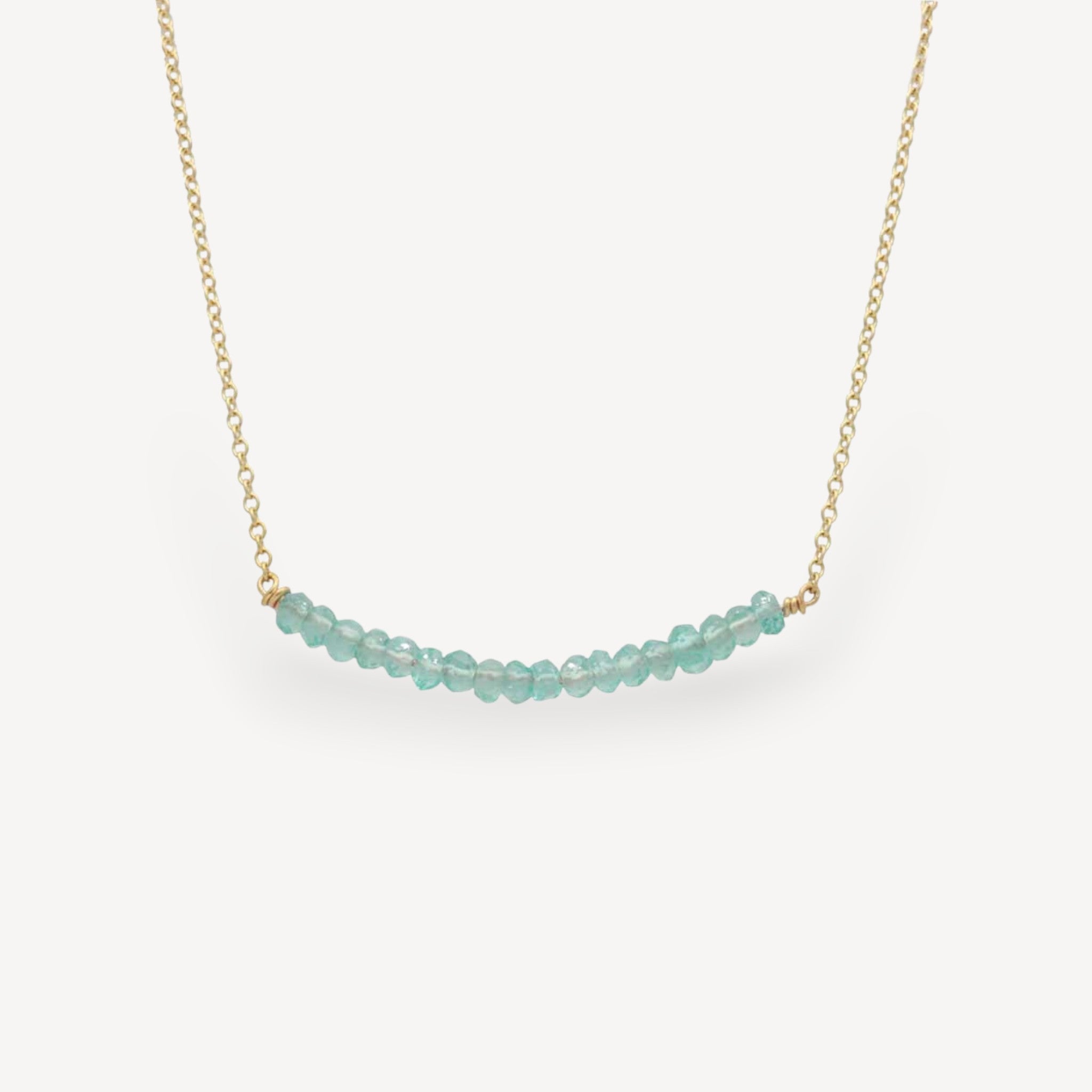 This fine recycled gold and facetted Apatite bead necklace is great for layering with other gold pieces or lovely worn as an elegant line of gold at the neck.