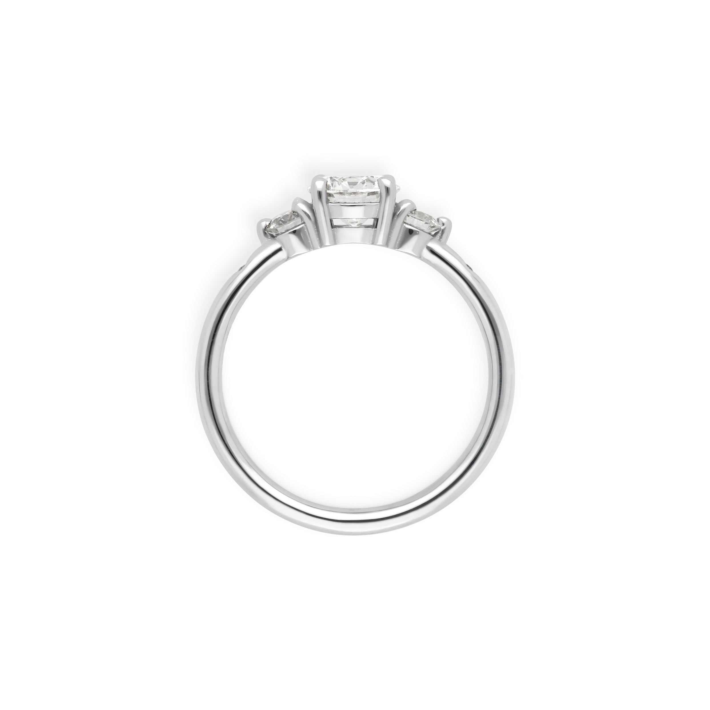 It is a stunning trilogy engagement ring with a gorgeous diamond. The diamonds are conflict free and there are tiny flush-set diamonds on in the band for extra detail.