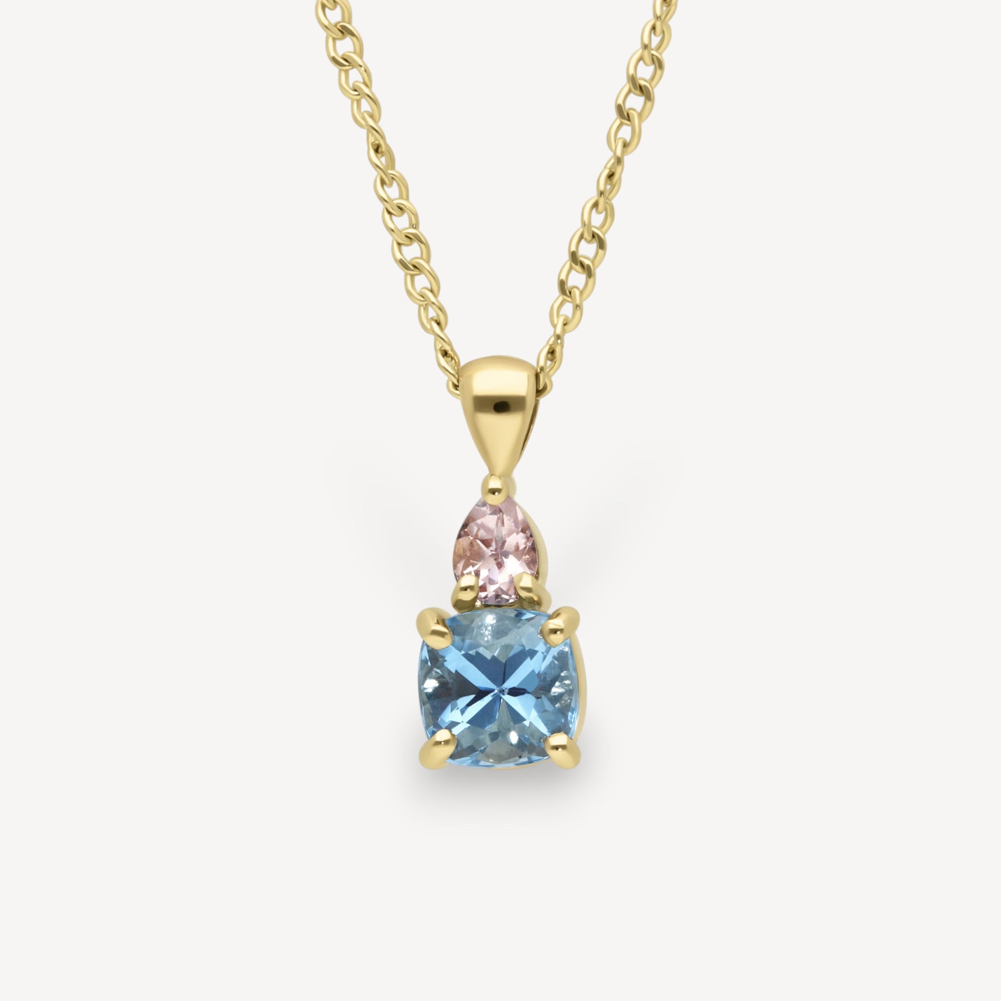 ELISE Double Gemstone Gold Pendant Necklace with Aquamarine