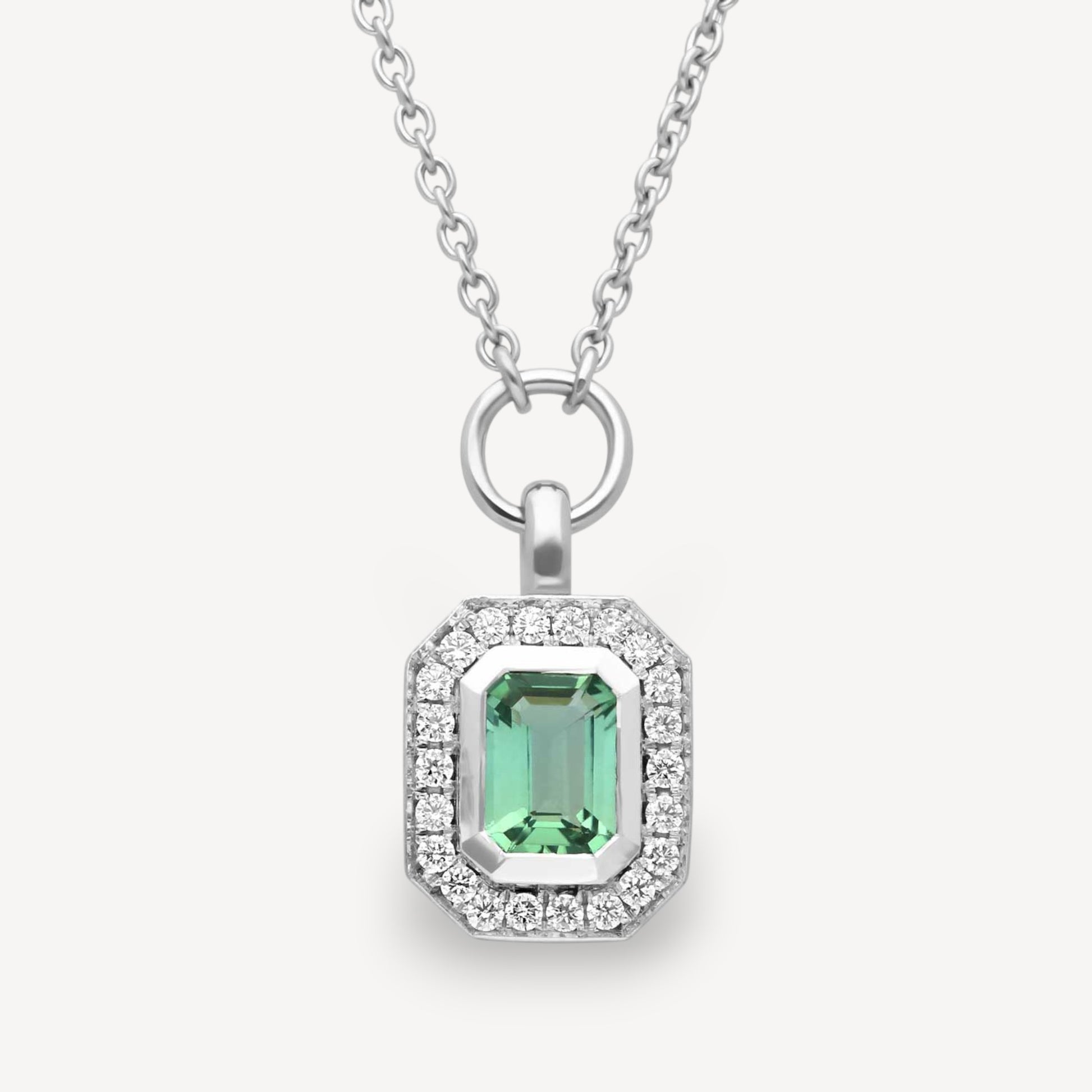 FRAME Mint Tourmaline Platinum Necklace with Diamond Halo