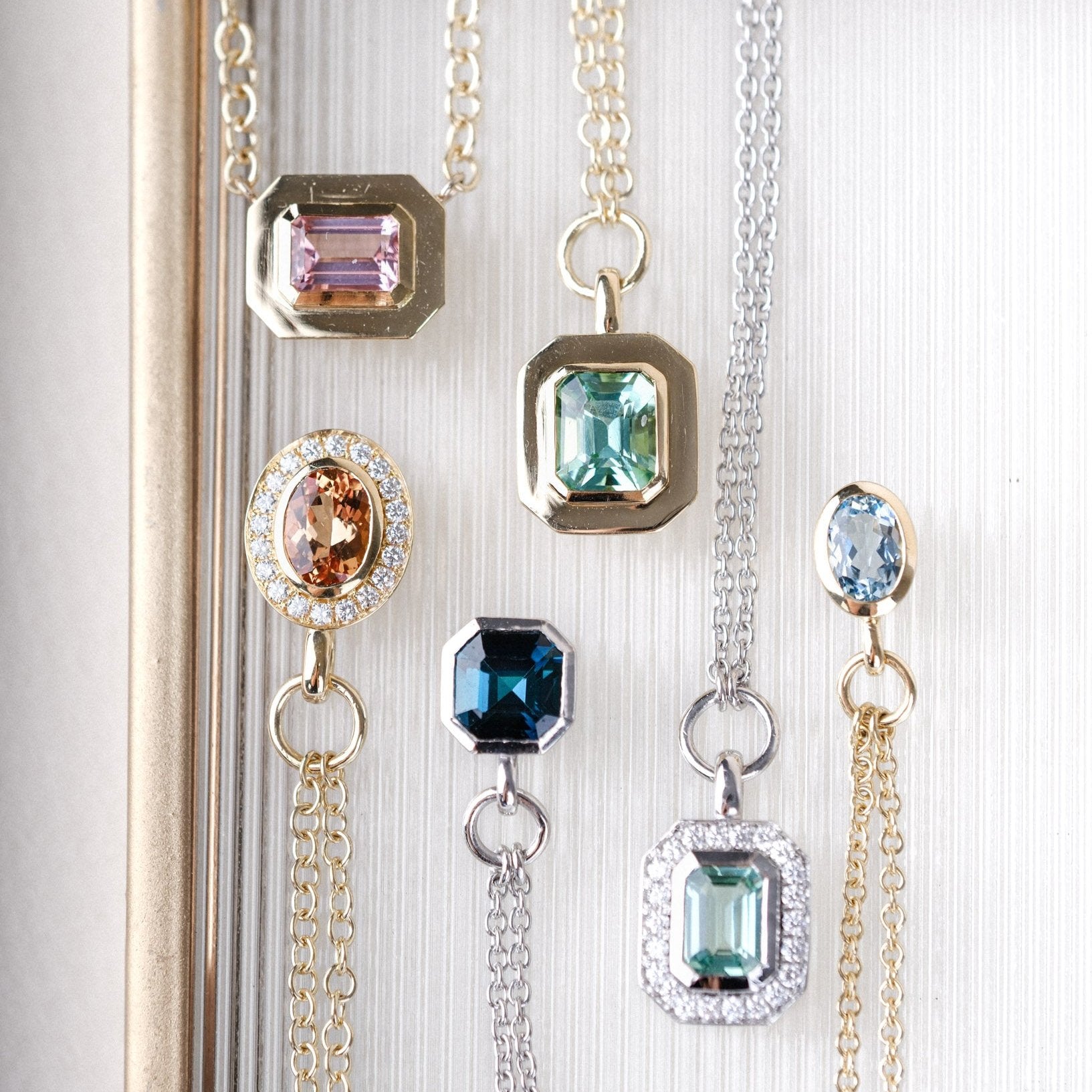 Each piece in our Frame Collection draws inspiration from the grand staircase at Goldsmith's Hall in the City of London. The graceful lines of its steps led us to frame exquisite gemstones in our rings and necklaces, echoing the elegance of this architectural masterpiece.