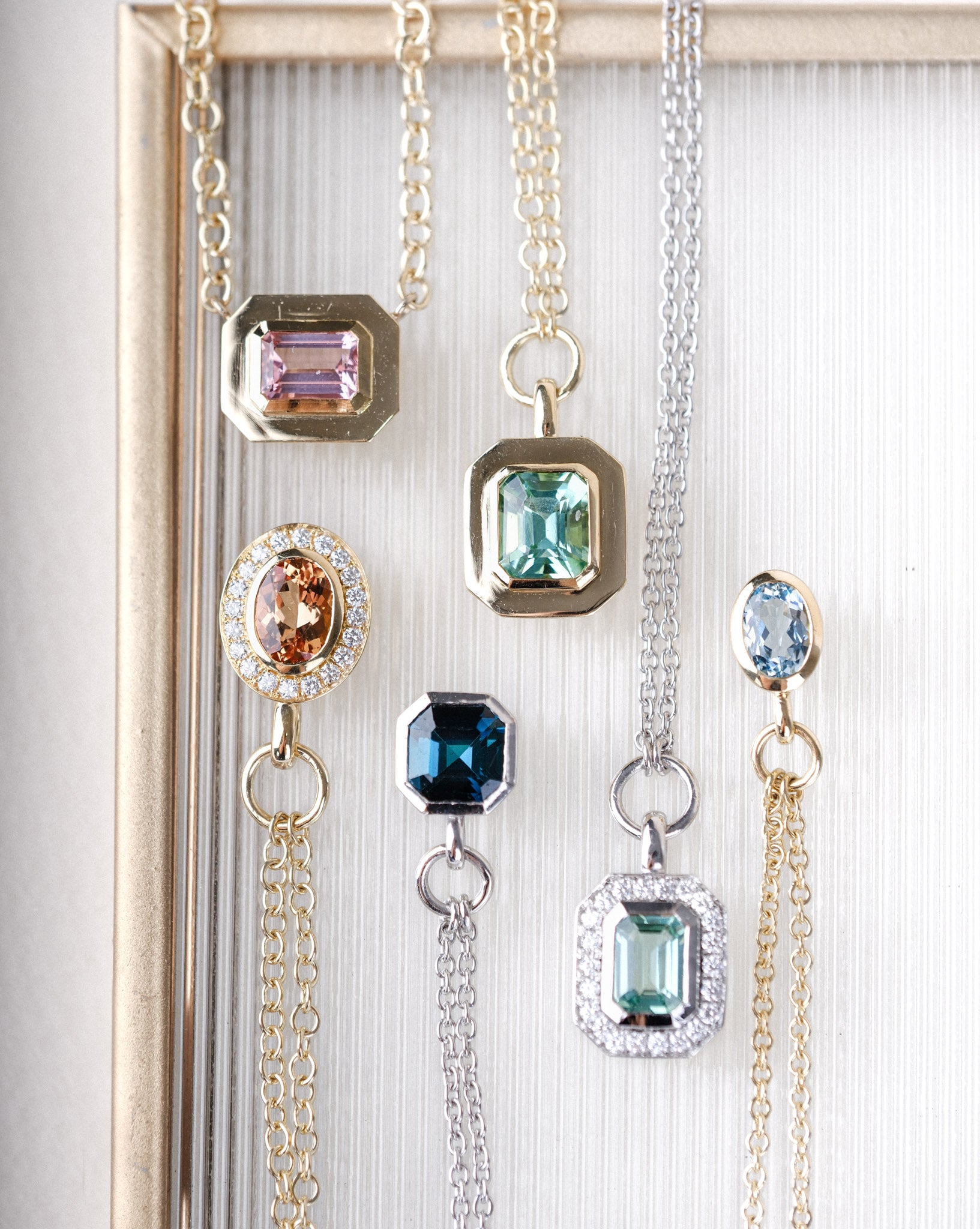 Each piece in our Frame Collection draws inspiration from the grand staircase at Goldsmith's Hall in the City of London. The graceful lines of its steps led us to frame exquisite gemstones in our rings and necklaces, echoing the elegance of this architectural masterpiece.