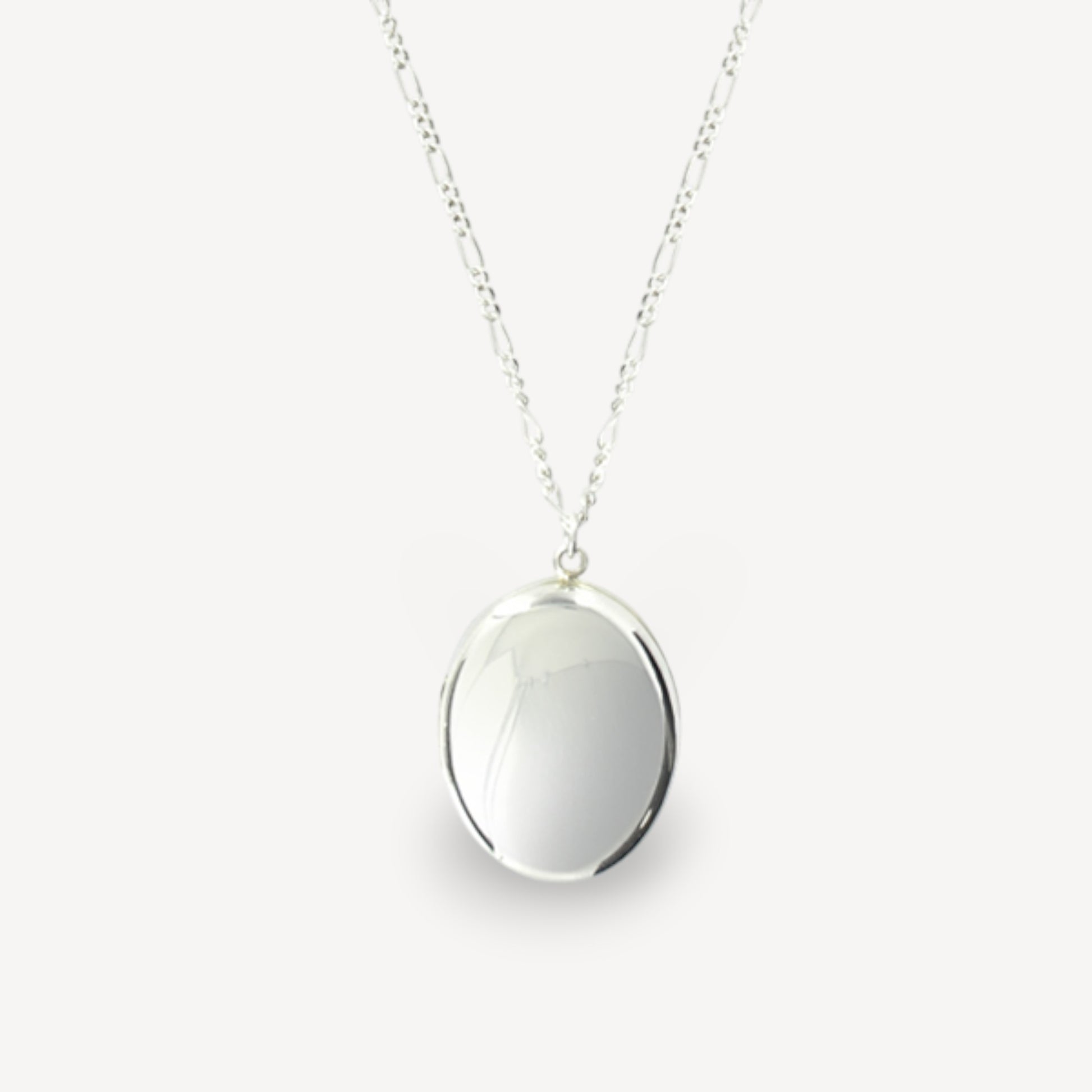 The Small Oval Silver Locket Necklace is a classic for any jewellery box and features two slots for two photographs.