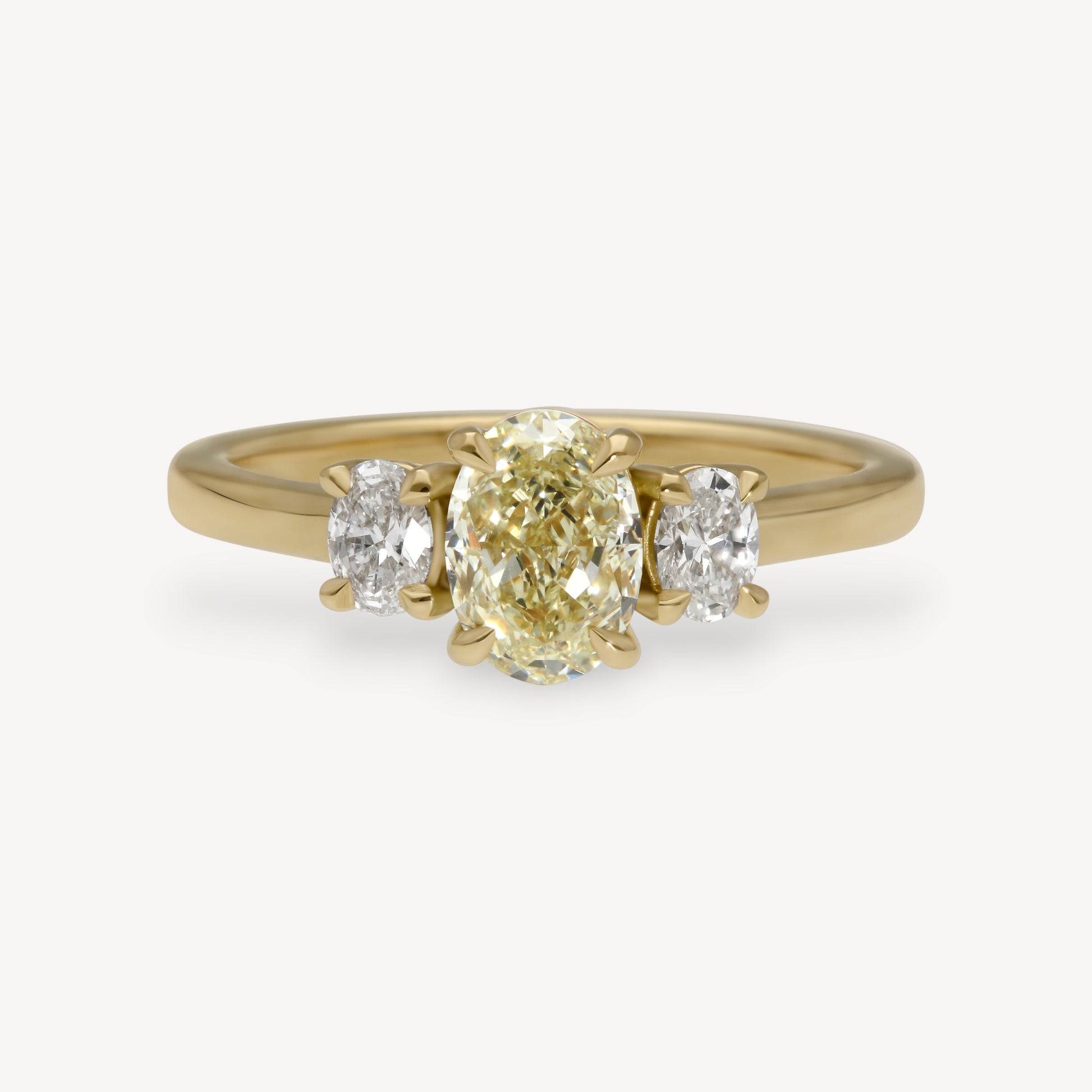 OTTILIE Oval Light Yellow Diamond Yellow Gold Trilogy Engagement Ring