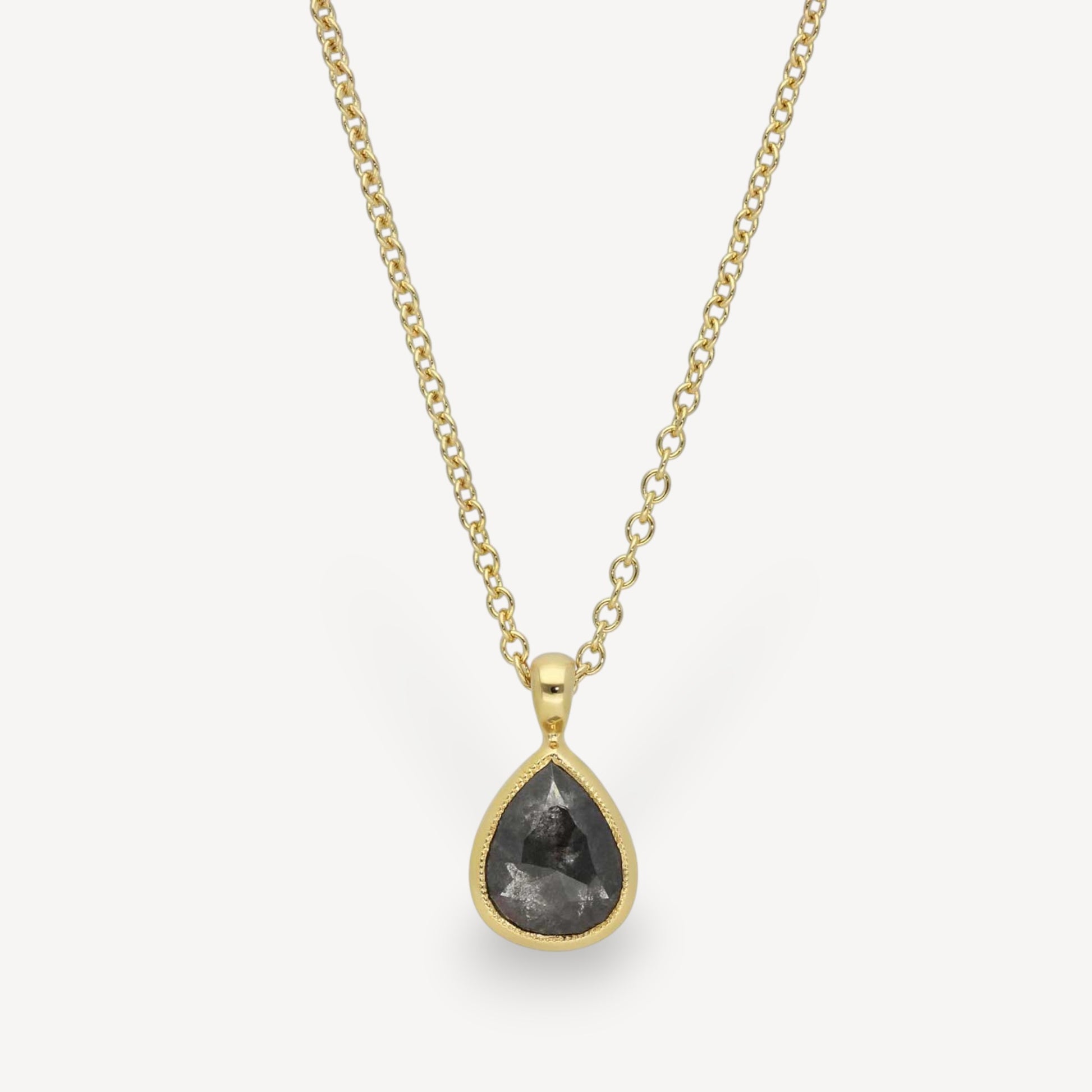 Pear Shaped Salt & Pepper Milgrain Pendant Necklace Yellow Gold
