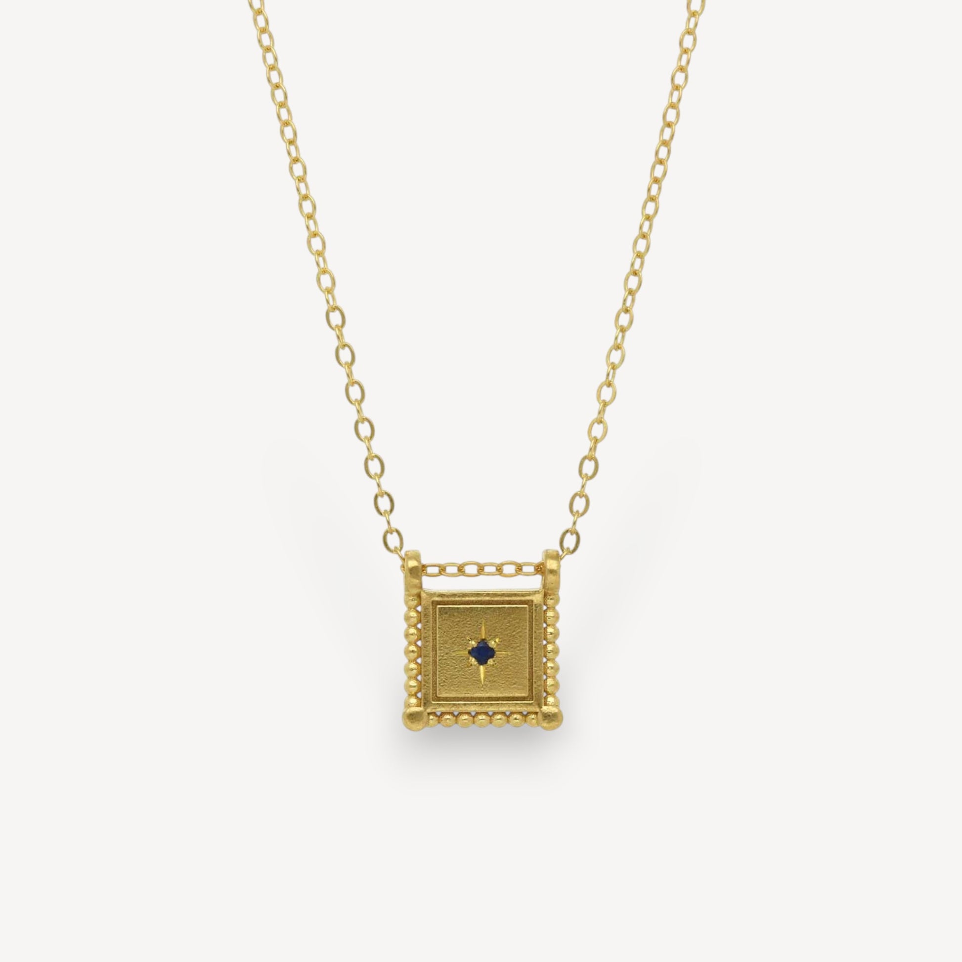 Square Slider Necklace Gold Plated with Sapphire
